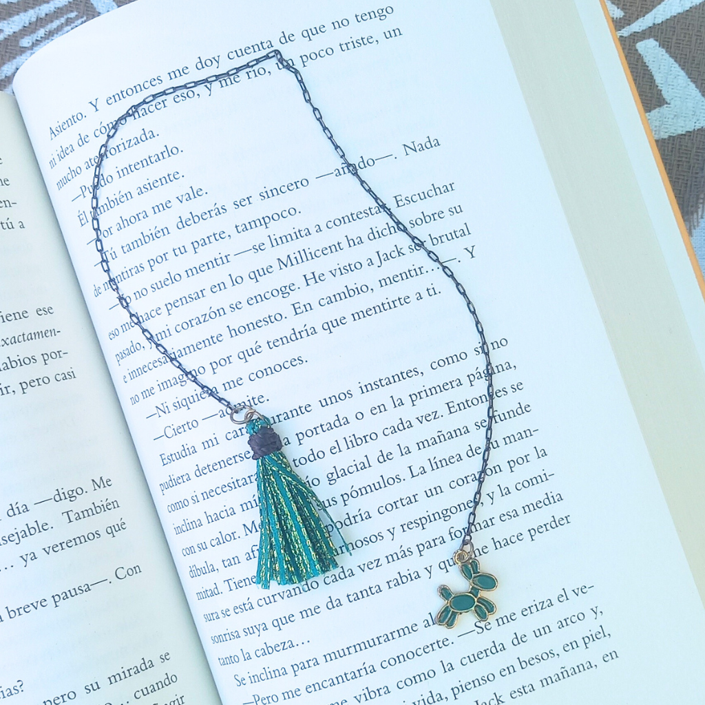 Un toque de sofisticación para tus lecturas. 📚 Nuestro marcapáginas artesanal, hecho a mano, combina una delicada cadena de 25 a 30 cm, un hermoso dije en un extremo y una borla en el otro, creando un accesorio único para los verdaderos amantes de los libros.