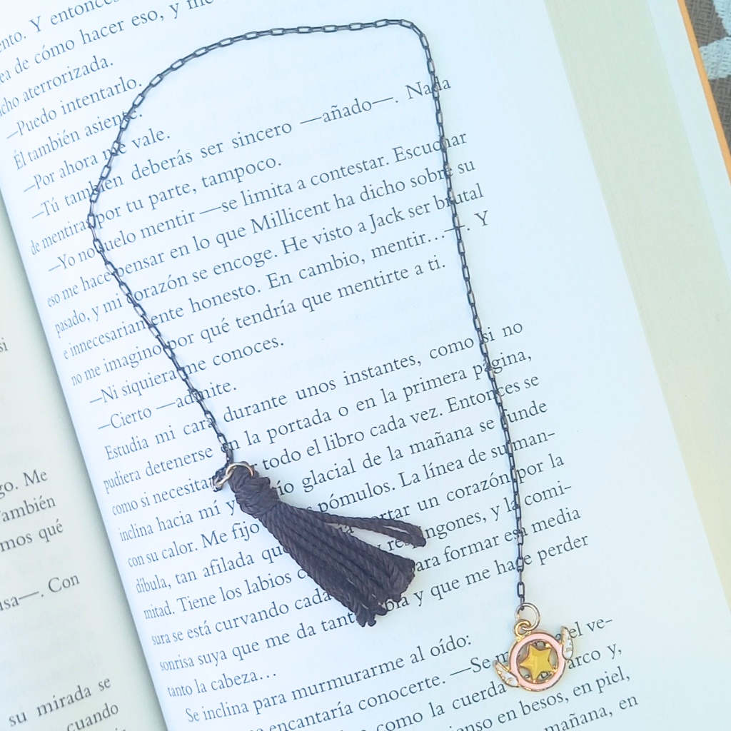 Un toque de sofisticación para tus lecturas. 📚 Nuestro marcapáginas artesanal, hecho a mano, combina una delicada cadena de 25 a 30 cm, un hermoso dije en un extremo y una borla en el otro, creando un accesorio único para los verdaderos amantes de los libros.