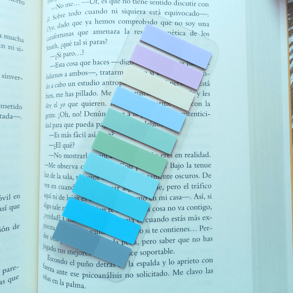 Nuestros marcadores de páginas transparentes son la herramienta perfecta para lectores apasionados, estudiantes y amantes de la organización.