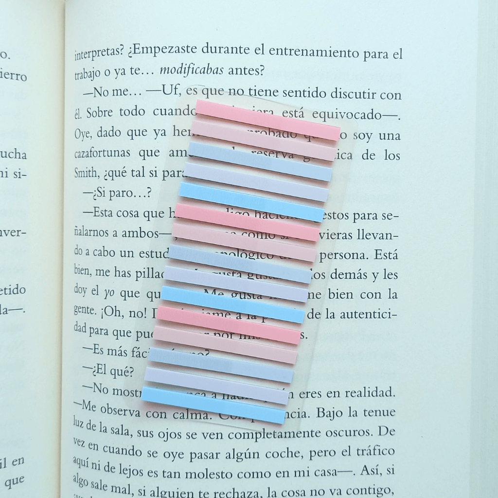 Nuestros marcadores de páginas transparentes son la herramienta perfecta para lectores apasionados, estudiantes y amantes de la organización.